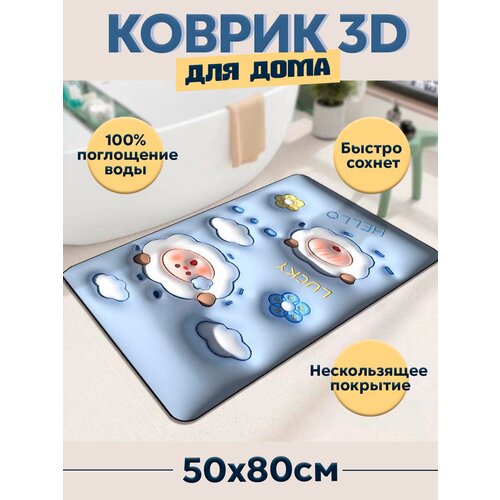 Коврик 3D для ванной быстросохнущий диатомитовый 50х80 Овечки