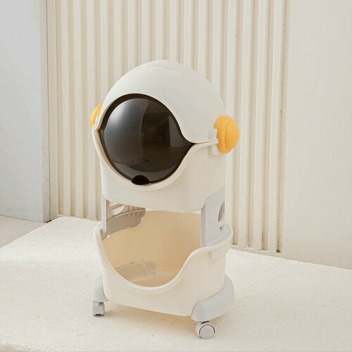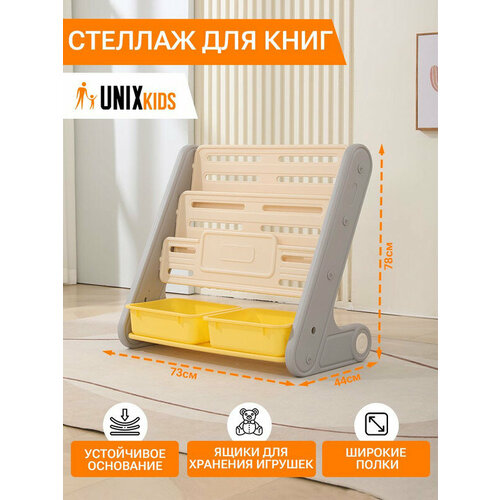 Стеллаж детский для хранения игрушек и книг UNIX Kids Yellow, пластик, серый/бежевый/желтый, 2 полки + 2 ящика