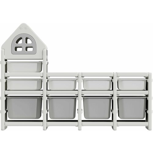 Стеллаж для игрушек UNIX Kids Grey 12 ящиков _ мебель в детскую _ для хранения _ серый _ белый