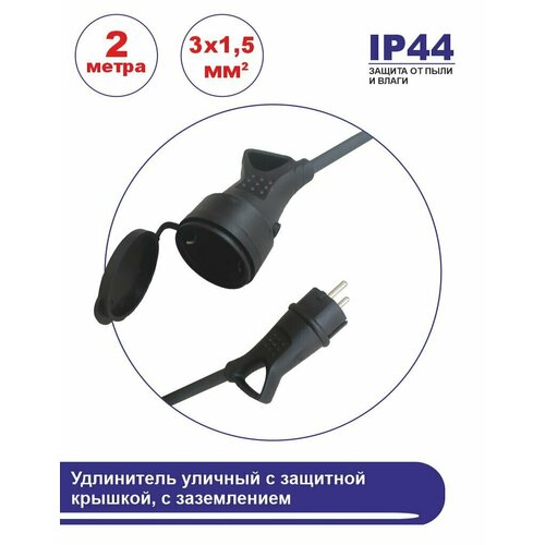 Удлинитель морозостойкий в бухте, 1 розетка 2 метра с защитной крышкой, с заземлением, 16 А, КГ (ГОСТ) 3x1.5 мм, черный