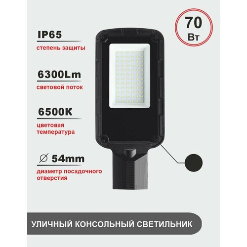 Уличный консольный светодиодный светильник 70Вт, 6500K, IP65, черный