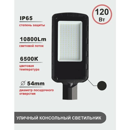 Уличный консольный светодиодный светильник 120Вт, 6500K, IP65, черный
