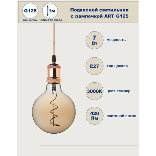 Подвесной светильник ART с лампочкой G125, 7Вт, E27, медь