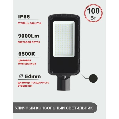 Уличный консольный светодиодный светильник 100Вт, 6500K, IP65, черный