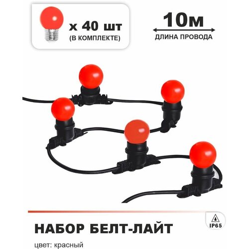 Гирлянда Белт лайт 10 м (шаг 0,25 м), красные лампочки 40 штук (в комплекте), Е27, 220В, каучук, IP65