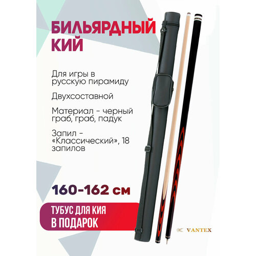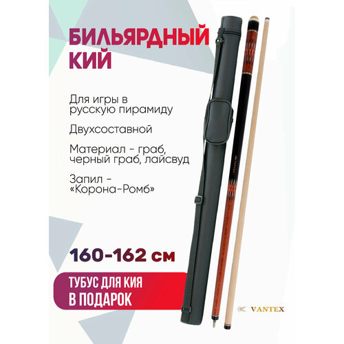 Vantex Бильярдный кий для русского бильярда Vantex Орион №2 (граб, черный граб, падук), двухсоставной