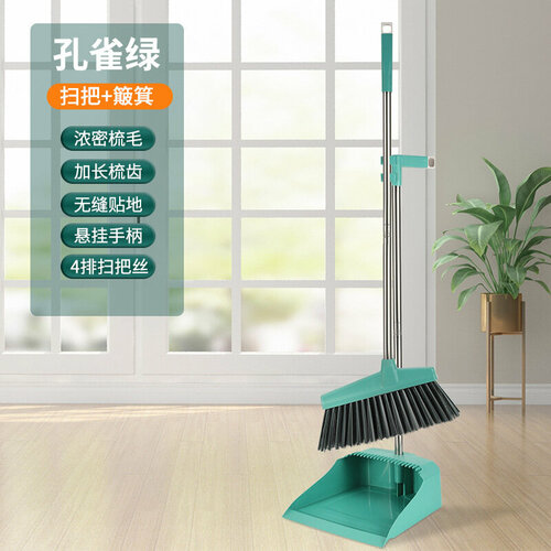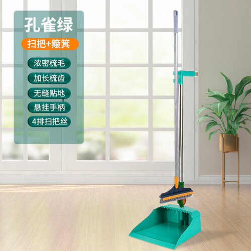 Щетка и совок для подметания мусора с функцией чиски стекол и изменением угла наклона рабочей поверхноски, Зеленая