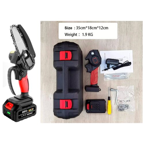 Аккумуляторная Садовая электропила с двумя аккумуляторами по 2Ah + запасная цепь в подарок