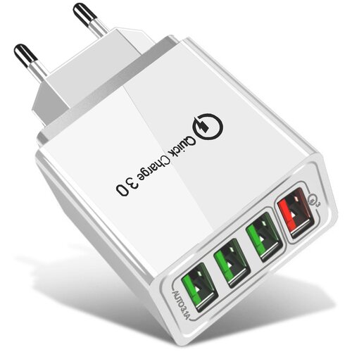 Сверхбыстрое сетевое зарядное устройство с 4 USB портами QC 3,0; White