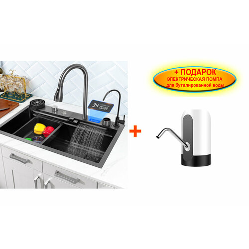 Премиальная мойка водопад люкс для кухни с электронным дисплеем контроля и дополнительными аксессуарами. В подарок - электрический диспенсер для воды