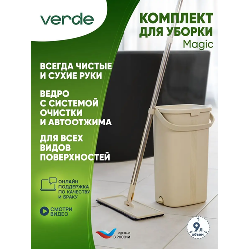 Набор для уборки ведро с отжимом, швабра МОП, Verde, Magic Compact, 39104