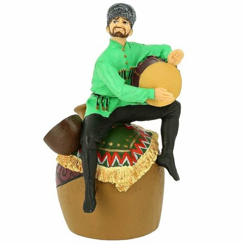 Подарочная статуэтка-колокольчик Горец музыкант (обожженная глина)