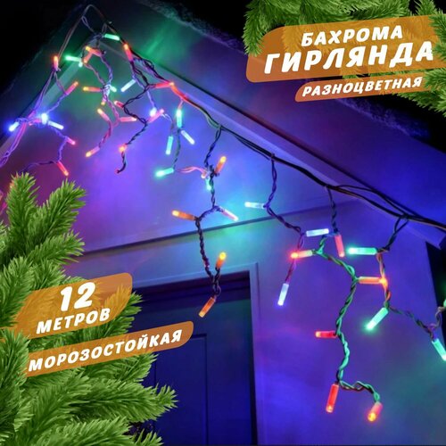 Гирлянда "Бахрома" уличная светодиодная, 12 метров, разноцветная