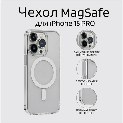 Чехол для iPhone 15 Pro с поддержкой MagSafe, противоударный, прозрачный