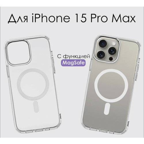 Чехол прозрачный противоударный для iPhone 15 Pro Max с поддержкой MagSafe/Магнитный чехол на Айфон 15 про макс