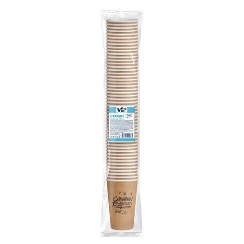 Стакан Vip бумажный крафт Заряжаю бодростью 1 слой 50 штук, 400мл