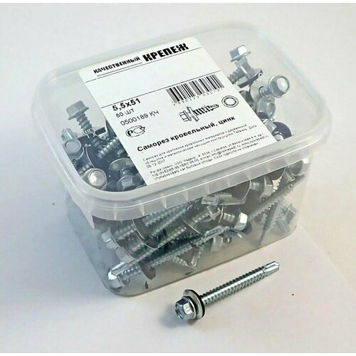 Саморезы кровельные 5,5*51мм цинк, VIP 80шт