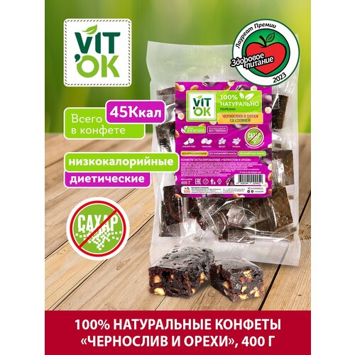 Конфета-батончик Vitok 100% натуральная полезная без сахара Чернослив и орехи, 400 г