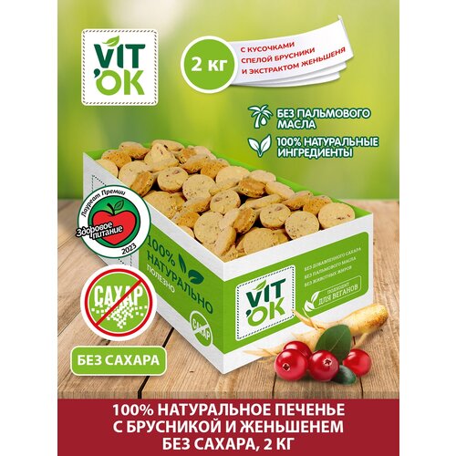 Vitok Полезное печенье без сахара с брусникой и женьшенем, натуральное, 2 кг