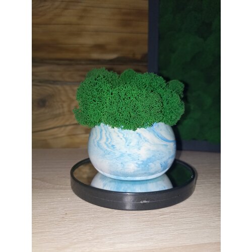 Кашпо бело-голубое со стабилизированным мхом