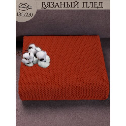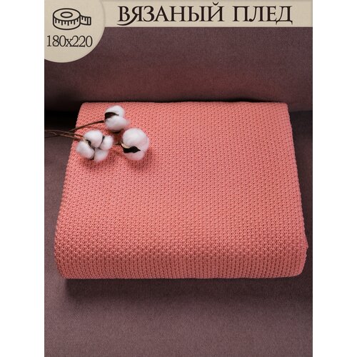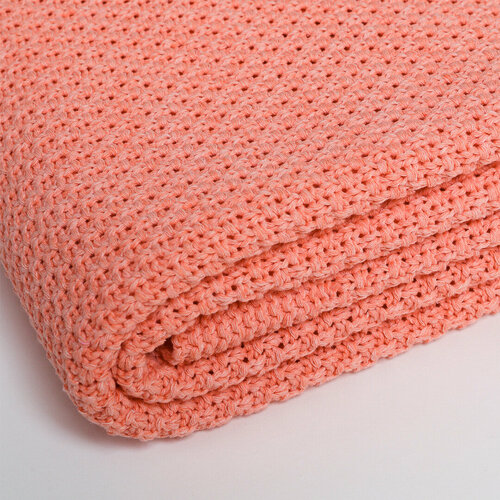 Плед, вязаный, Warm Whiff, коралловый, 180х220, хлопок, покрывало для взрослого, сна, дивана, на кресло, большой, тонкий, красивый, нежный