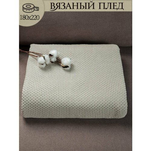Плед, вязаный, Warm Whiff, светло-бежевый, 180х220, хлопок, покрывало для взрослого, сна, дивана, на кресло, большой, тонкий, красивый, нежный