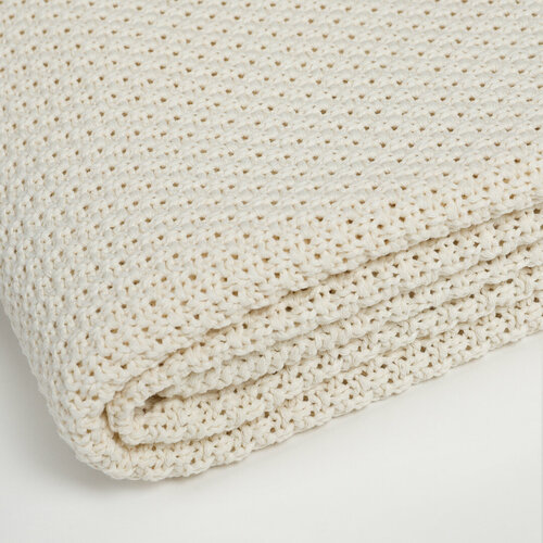 Плед вязаный для малыша, покрывало, хлопок 100%, WARM WHIFF, молочный, 90х110, вязаное одеяло в кроватку, в подарок, плед тонкий детский на лето