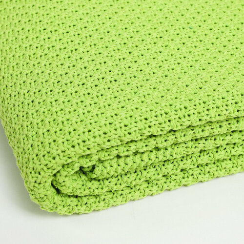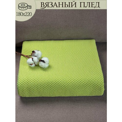 Плед, вязаный, Warm Whiff, светло-зеленый, 180х220, хлопок, покрывало для взрослого, сна, дивана, на кресло, большой, тонкий, красивый, нежный