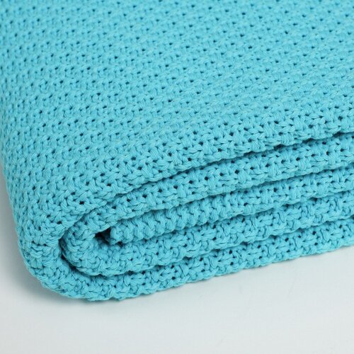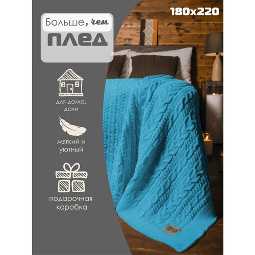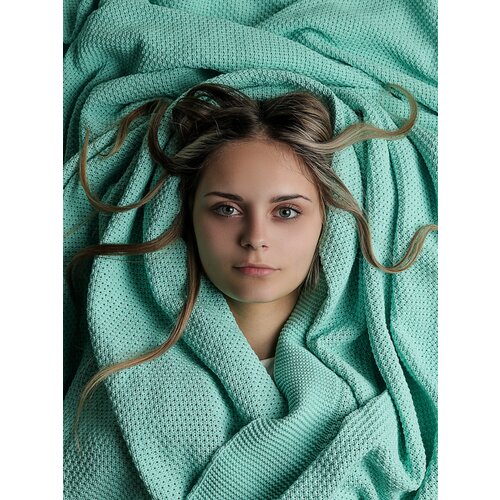 Плед, вязаный, Warm Whiff, бирюзовый, 180х220, хлопок, покрывало для взрослого, сна, дивана, на кресло, большой, тонкий, красивый, нежный