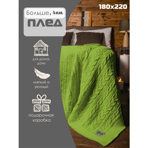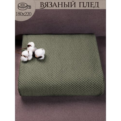 Плед, вязаный, Warm Whiff, оливковый, 180х220, хлопок, покрывало для взрослого, сна, дивана, на кресло, большой, тонкий, красивый, нежный
