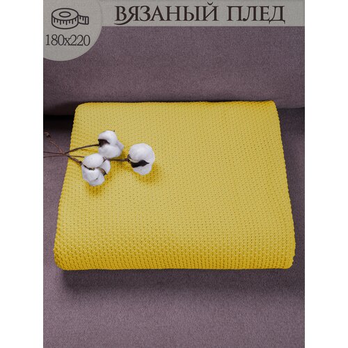 Плед, вязаный, Warm Whiff, желтый, 180х220, хлопок, покрывало для взрослого, сна, дивана, на кресло, большой, тонкий, красивый, нежный