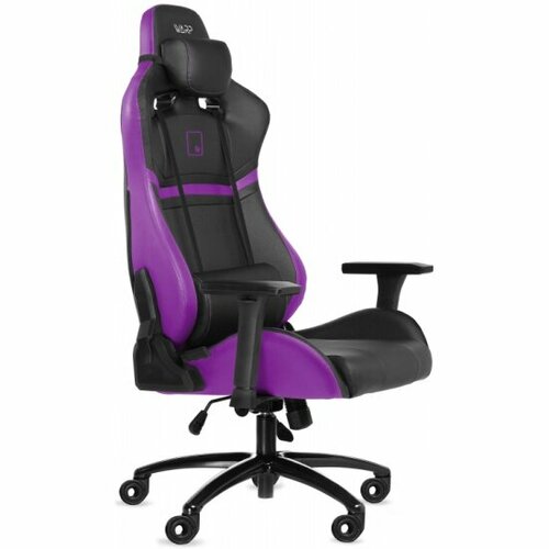 Кресло геймерское WARP Gr чёрно-фиолетовое (экокожа, алькантара, регулируемый угол наклона, механизм качания)