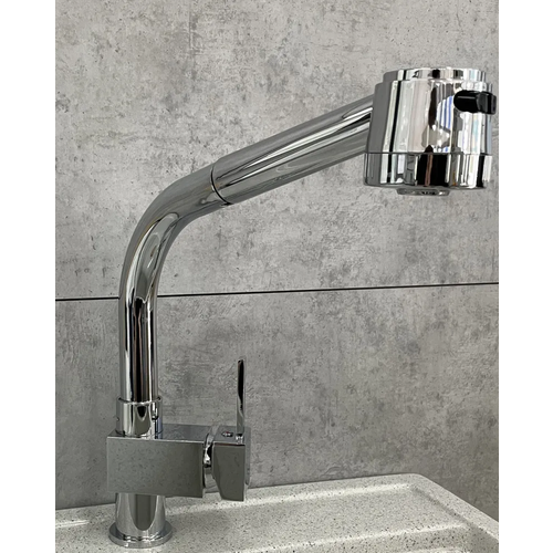 Смеситель для кухни-мойки WAVE-A0302 с выдвижным изливом и режимом душ. (Латунный)