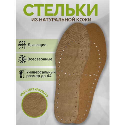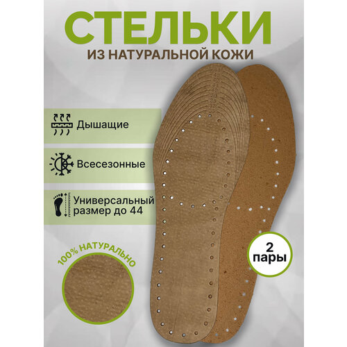 Повседневные стельки из натуральной кожи в комплекте (2 пары), обеспечивают комфорт и вентиляцию. Универсальный размер от 35 до 44