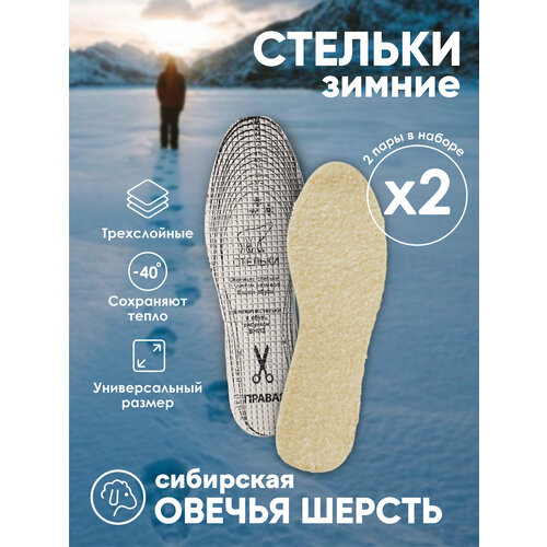 Зимние, теплые, отрезные стельки из натуральной овчины (2 пары). Универсальный размер от 36 до 45