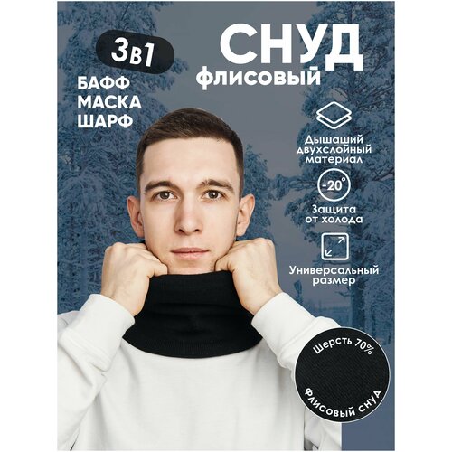 Снуд мужской зимний флисовый бафф спортивный для лица и шеи. Снуд-хомут утепленный