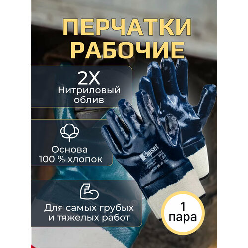 Рабочие строительные перчатки из полиэстера и ХБ с нитриловой обливкой с крага манжетом для самых тяжелых работ