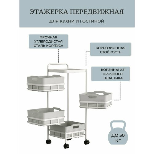 Этажерка на колесиках с 4 съемными ящиками для хранения