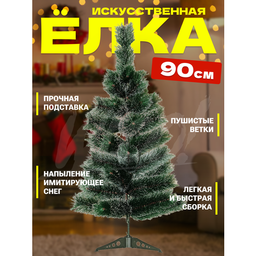 Елка искусственная новогодняя ель пушистая заснеженная 90 см