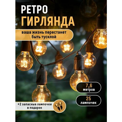 Ретро гирлянда уличная, электрогирлянда новогодняя, 25 лампочек