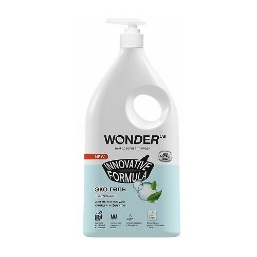 WONDER LAB экогель для мытья посуды овощей и фруктов Innovative Formula яблочный цвет с дозатором, 1 л, 1.1 кг