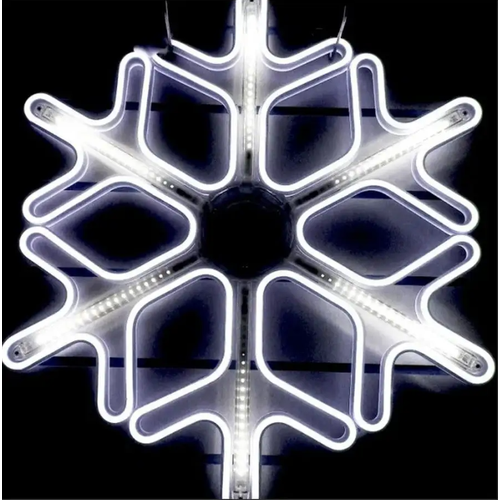 Новогодняя гирлянда уличная - Снежинка неоновая белая, с белыми разводами, 60 см