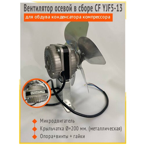 Вентилятор осевой в сборе CF YJF5-13 для обдува конденсатора компрессора витрины, морозильной камеры, ларя