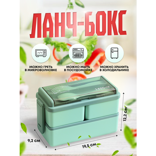 Ланч-бокс двухуровневый с отделениями "Герметичный" 1400мл