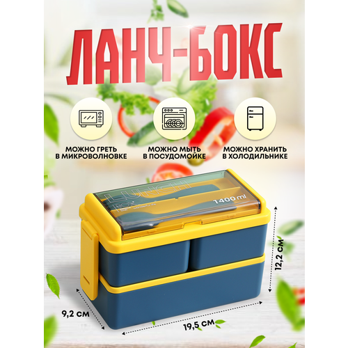 Ланч-бокс двухуровневый с отделениями "Герметичный" 1400мл, синий