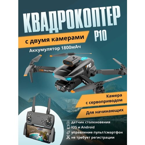 Квадрокоптер P10 с двойной подвижной камерой FullHD, дрон складной