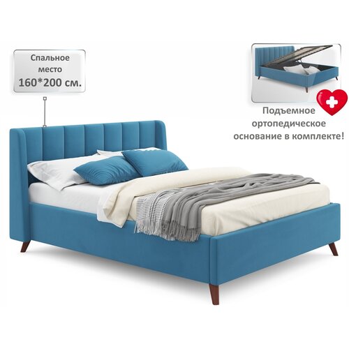 Мягкая кровать Betsi 1600 синяя с подъемным механизмом
