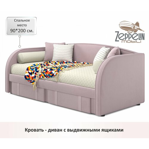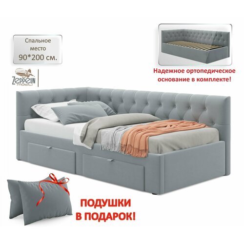 Односпальная кровать-тахта угловая Afelia 900 серая Zeppelin с ортопедическим основанием , 90х200, мягкая из велюра, с ящиками