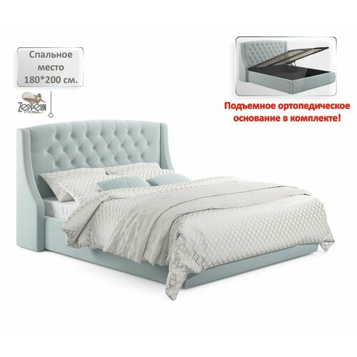 Мягкая кровать Stefani 1800 мята пастель с подъемным механизмом