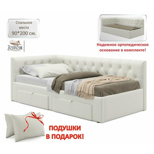 Односпальная кровать-тахта угловая Afelia 900 бежевая Zeppelin с ортопедическим основанием , 90х200, мягкая из велюра, с ящиками